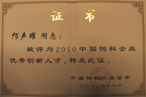 表彰他從事科研開(kāi)發(fā)三十年,領(lǐng)導畜科公司踐行產(chǎn)學(xué)研,走科技創(chuàng )新發(fā)展之路,畜科公司先后成為“國家創(chuàng )新型企業(yè)”、“國家高新技術(shù)企業(yè)”,“全國50強飼料企業(yè)”和“農業(yè)產(chǎn)業(yè)化重點(diǎn)龍頭企業(yè)”,為整合集成科技創(chuàng )新戰略聯(lián)盟,為加強國際科技合作項目,為引領(lǐng)產(chǎn)學(xué)研緊密結合與踐行飼料添加劑行業(yè)健康可持續發(fā)展作出了重要貢獻。