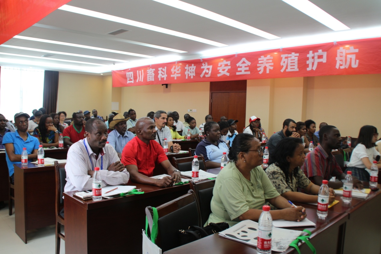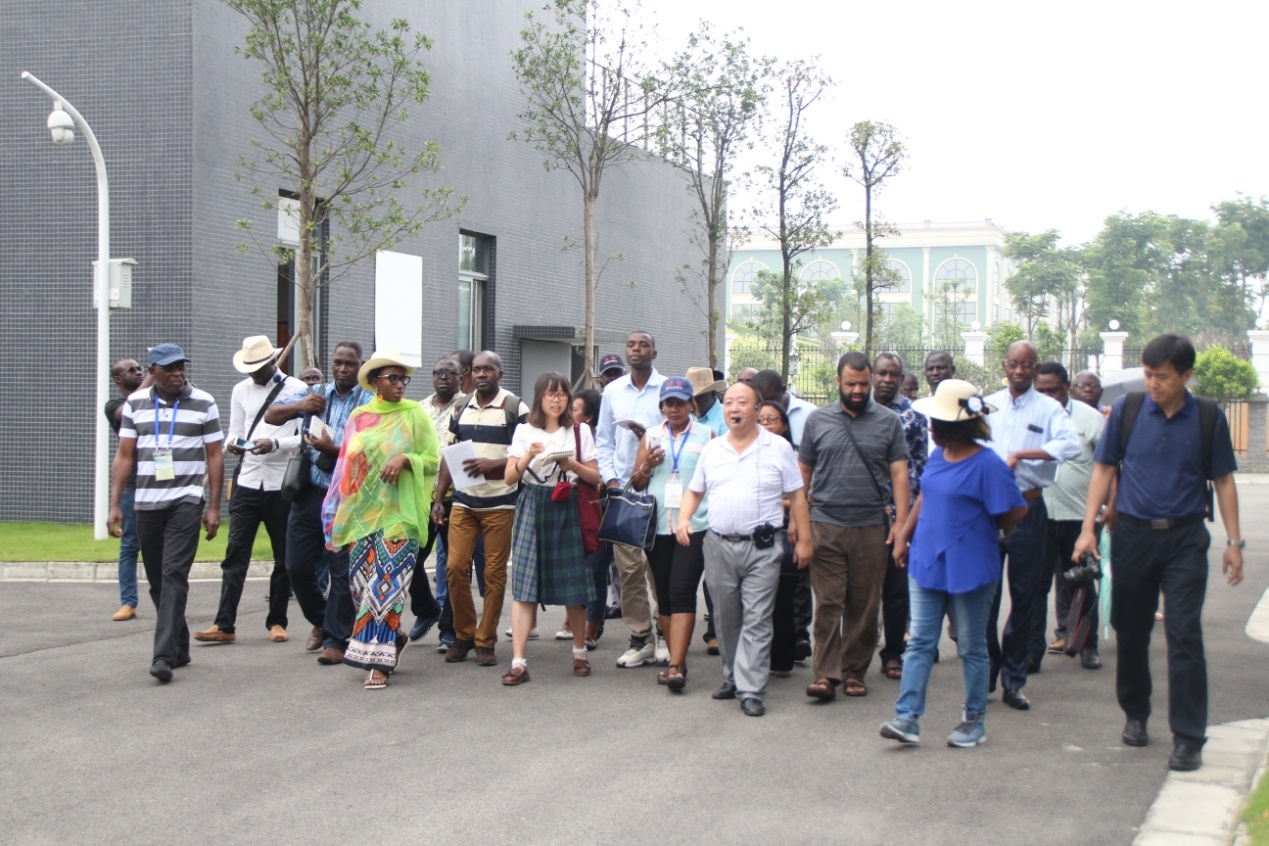 此次考察由農業(yè)部對外經(jīng)濟合作中心項目章樹(shù)民處長(cháng)帶隊,四川省農業(yè)廳國際合作處高級農藝師陳紅群陪同考察。研修班50名學(xué)員來(lái)自南非、塞拉利昂、阿爾及利亞、貝寧、剛果等14個(gè)國家,先后參觀(guān)了我公司廠(chǎng)區和研發(fā)中心,畜科華神常務(wù)副總陰文奇、副總經(jīng)理李慧明進(jìn)行了全程講解。