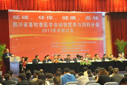 您當前位置: 網(wǎng)站首頁(yè) > 新聞媒體 > 畜科動(dòng)態(tài)2011年10月14日至10月15日, 2011動(dòng)物營(yíng)養與飼料分會(huì )學(xué)術(shù)年會(huì )在成都市龍泉驛區博瑞花園酒店隆重舉辦。本次年會(huì )以“低碳、環(huán)保、健康、高效”為主題,由四川省畜牧獸醫學(xué)會(huì )動(dòng)物營(yíng)養與飼料學(xué)分會(huì )主辦,住友化學(xué)(上海)有限公司、四川畜科公司和成都金枝源生物技術(shù)有限公司協(xié)辦。大會(huì )邀請到國內知名專(zhuān)家、教授和優(yōu)秀企業(yè)技術(shù)總監:中國農業(yè)大學(xué)譙仕彥教授、蘇州大學(xué)葉元土教授、四川農業(yè)大學(xué)陳代文教授、西南大學(xué)佘永建教授、四川省畜牧科學(xué)院段誠中研究員、日本住友化學(xué)張青青博士和鐵騎力士集團馮光德博士進(jìn)行專(zhuān)題報告,報告內容涉及豬日糧配制技術(shù)研究進(jìn)展、水產(chǎn)飼料產(chǎn)業(yè)的重要變化與對策、營(yíng)養與營(yíng)養源、豬用新型抗菌肽生物飼料對當今豬疫病防控及促生長(cháng)的實(shí)驗研究及應用效果、豬業(yè)健康養殖的關(guān)鍵與細節、蛋氨酸營(yíng)養價(jià)值細認識和安全蛋品生產(chǎn)模式探索。來(lái)自四川省畜牧科學(xué)院、四川農業(yè)大學(xué)、西南民族大學(xué)、中農穎泰、武漢新華揚、華西希望、通威、特區、三旺、隆生、巨星、萬(wàn)家好、旺達、四川長(cháng)鳴、德陽(yáng)瑯?lè )?、成都大帝等省內外知名高校、科研院所和飼料企業(yè)的有關(guān)專(zhuān)家、教授、科技人員、學(xué)生與行業(yè)精英共318人參加了本次盛會(huì )。大會(huì )開(kāi)幕式由分會(huì )秘書(shū)長(cháng)王之盛教授主持,中國飼料工業(yè)協(xié)會(huì )沙玉圣副秘書(shū)長(cháng)、四川農業(yè)大學(xué)副校長(cháng)朱慶教授、四川省飼料辦張履平主任、四川省畜牧科學(xué)院副院長(cháng)蔣小松研究員應邀出席年會(huì )并發(fā)表講話(huà)。